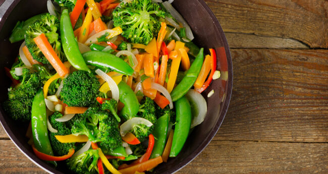 Refresh your meals with this quick and colorful spring veggie stir-fry featuring fresh broccoli, sweet peppers, onions and crisp sugar snap peas.