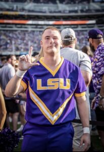 After high school, Isaac enrolled at the University of Louisiana at Lafayette. Looking for something new during the quieter months of the COVID era, he stumbled into cheerleading. What started as curiosity quickly became passion. He earned a spot on the UL cheer team, then later transferred to LSU to cheer during the Tigers’ 2023 football season.