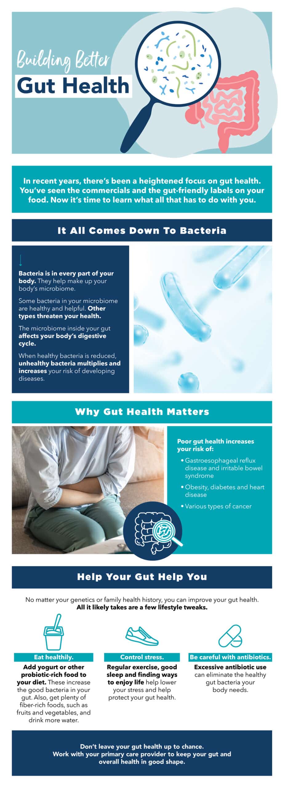 Your gut is also known as your gastrointestinal (GI) tract. It helps your body process food and drinks. The GI tract also gets rid of calories you don’t use. When you have good gut health, you probably don’t think much about it. You enjoy life, eating and drinking what you like without any negative effects. However, a number of gut health problems can develop over time.
