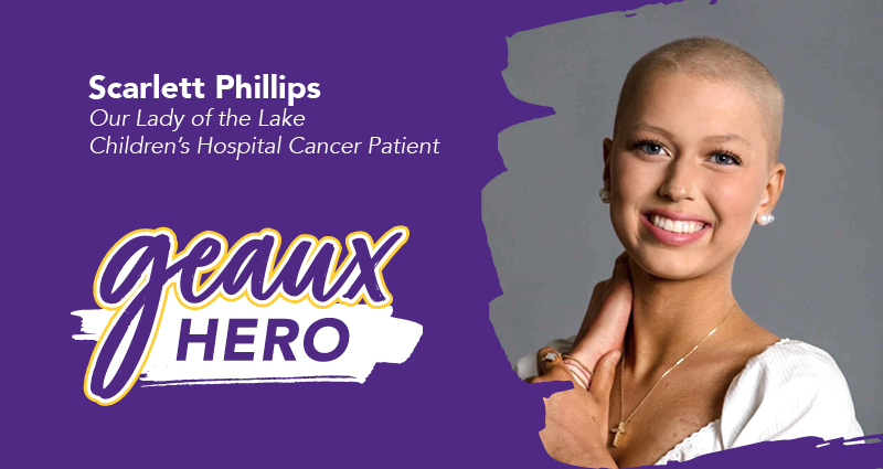 On November 15, Scarlett will be recognized as one of Our Lady of the Lake’s Geaux Heroes during the LSU Football game against Arkansas, a celebration of her strength, her spirit and the care teams who cheered her on every step of the way.