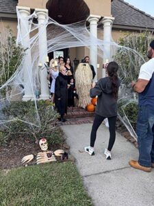 Last Halloween, Boudreaux was surrounded by her children and grandchildren on the porch of her Lafayette home, everyone in costumes inspired by The Addams Family. Trick-or-treating started in less than 15 minutes – just enough time to take pictures before heading out for a fun evening. Boudreaux stood beneath mounds of hula skirt hay she skillfully crafted to resemble Cousin Itt.