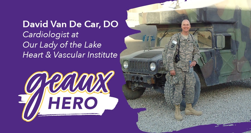 Dr. Van De Car has been honored as one of Our Lady of the Lake’s Geaux Heroes, which recognizes our incredible doctors and medical team members. He is being recognized on the field of Tiger Stadium during the LSU football game October 21 against the Army. The game will also serve to honor and celebrate veterans.